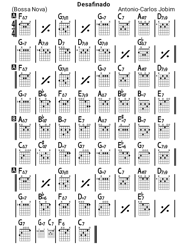 Se voc disser que eu desafino amor Saiba que isso em mim provoca imensa dor S privilegiados tm ouvido igual ao seu Eu possuo apenas o que Deus me deu Se voc insiste em classificar Meu comportamento de anti-musical Eu mesmo mentindo devo argumentar Que isto bossa-nova, isto muito natural O que voc no sabe nem sequer pressente Que os desafinados tambm tm um corao Fotografei voc na minha Roleiflex Revelou-se a sua enorme ingratido S no poder falar assim do meu amor Este o maior que voc pode encontrar Voc com sua msica esqueceu o principal Que no peito dos desafinados No fundo do peito bate calado Que no peito dos desafinados Tambm bate um corao